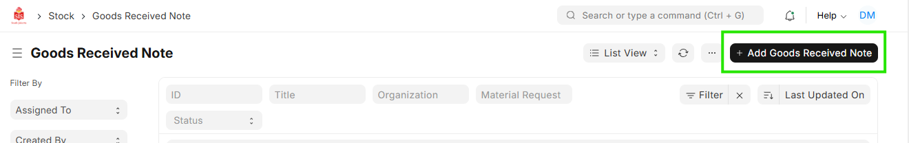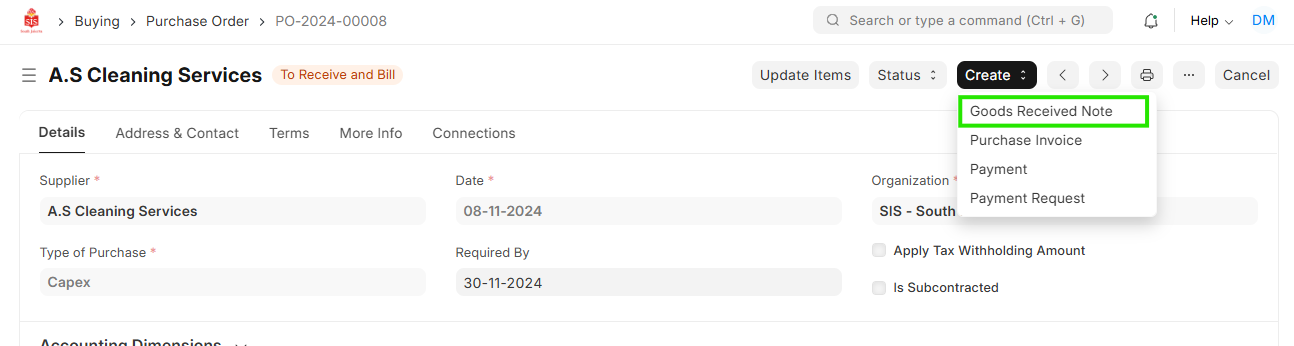 Navigation 1 : Home > Select Buying Module > Select Purchase order>Click on Create Button > Select Goods Received Note