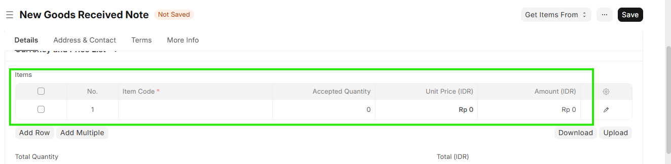 Navigation 1 : Home > Select Buying Module > Select Purchase order > Select Goods Received Note