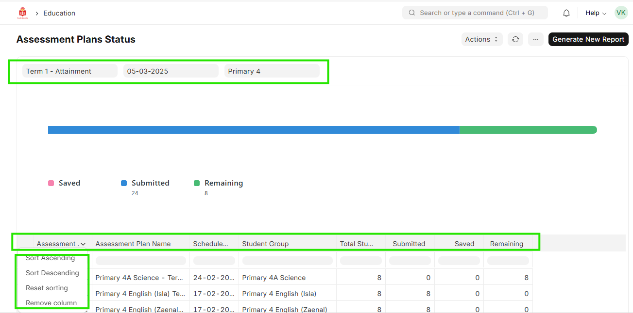 2. Select the relevant filters in the required fields and check the status of the updates at an assessment event level