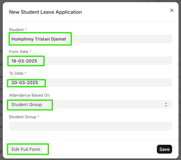 2. If the student was absent but needs to be marked as present, go to education module and select Student Leave Application