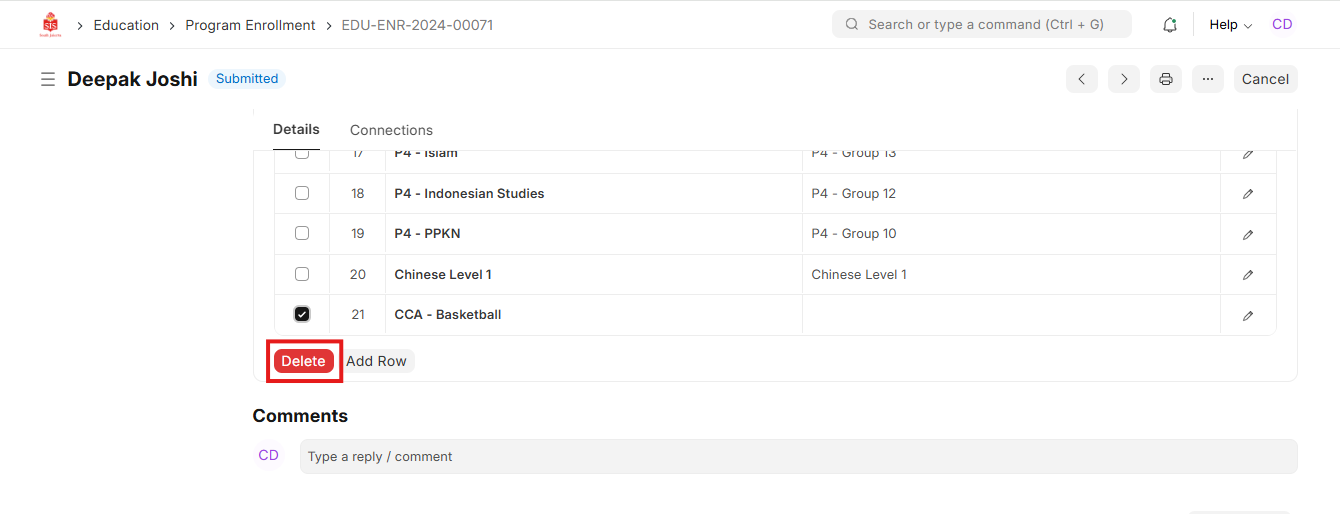 3. Check the enrolled course list and select the courses that are not applicable to the student from the subject list provided
