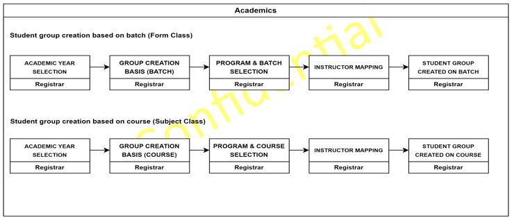 | Create Student Group (based on course/subject) | Registrar | Education > Student Group | [click here] |