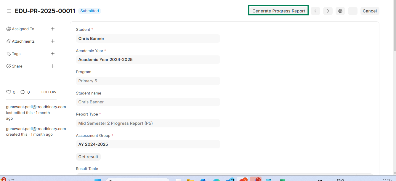ED-Student progress Report creation based on assessment (internal)