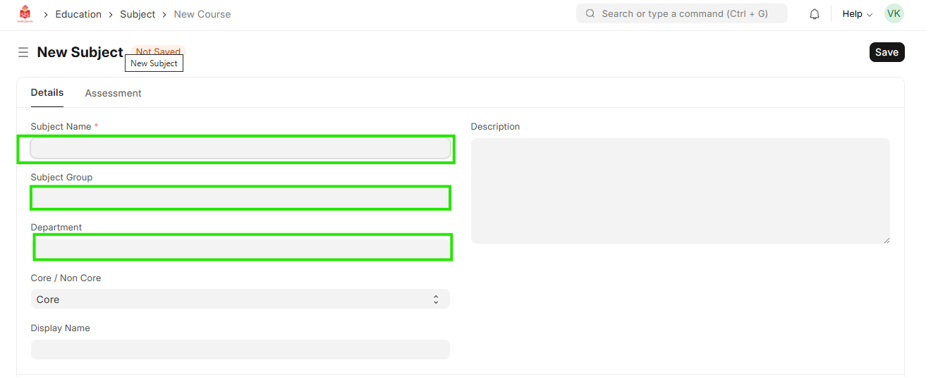 Navigation:Education > Subject > Add Subject