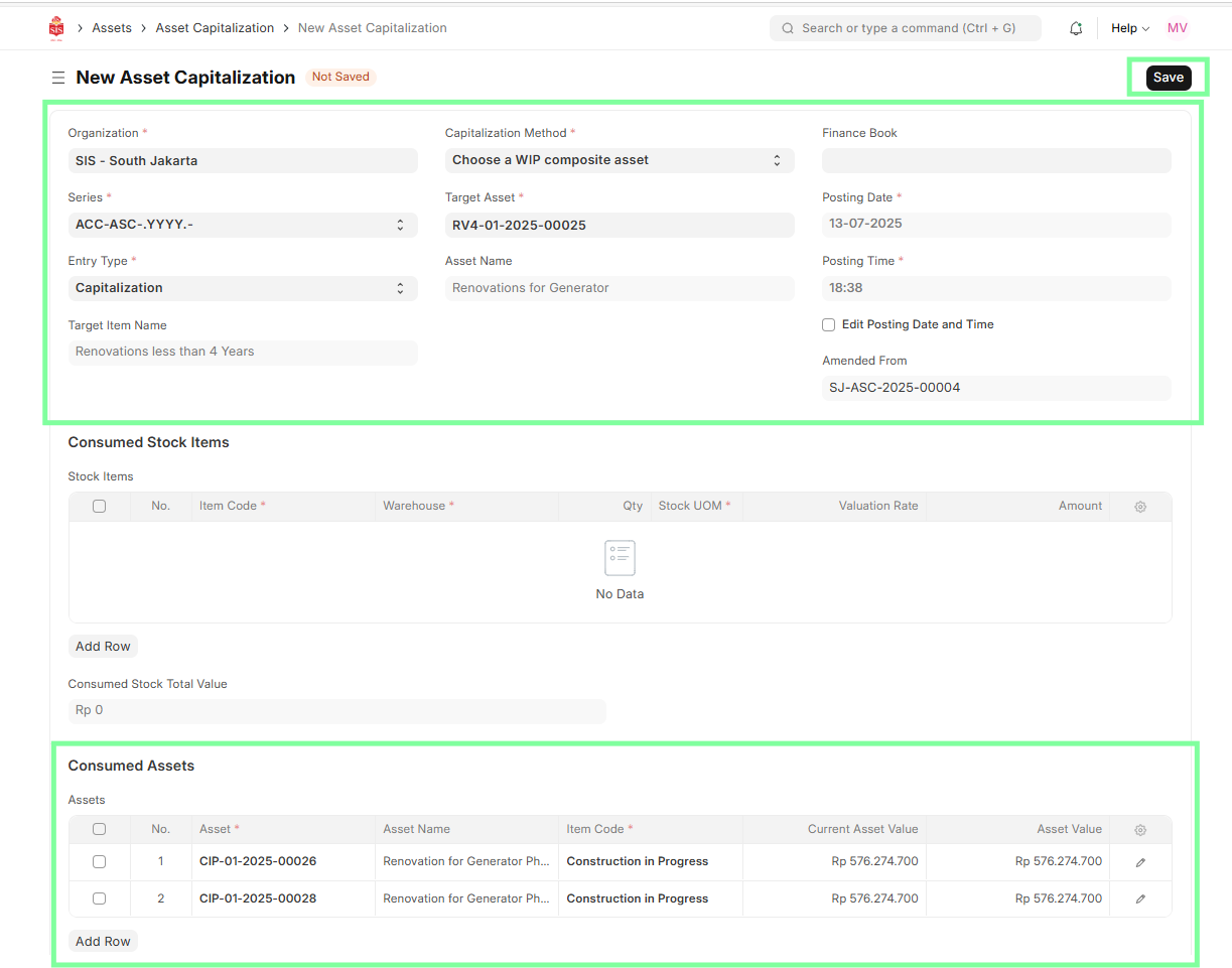 - Asset Capitalization