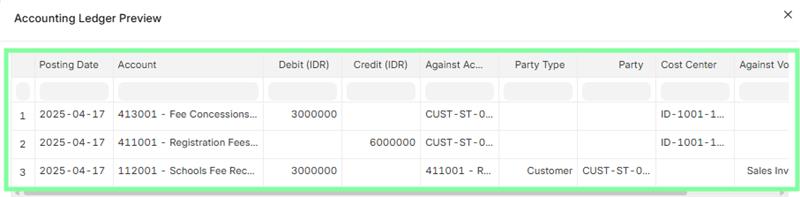 - Match the invoice against any advance/deposit received, if applicable (especially for admission deposits or prepayments).