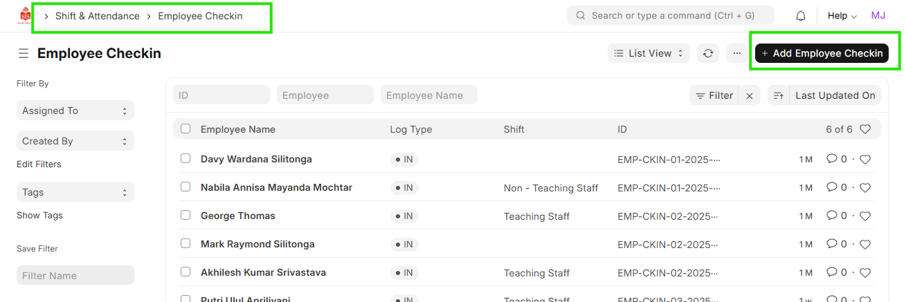 Navigation: Home > Select HR Module > Select Shift & Attendance > Select Employee Checkin