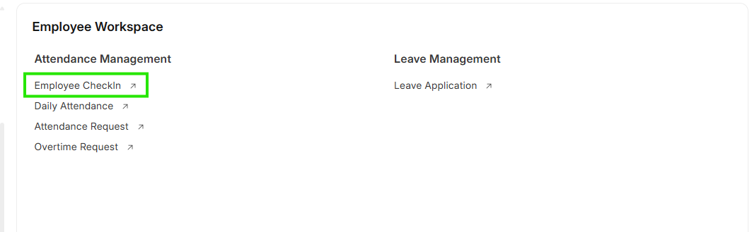 Goto "Employee Workshop" and click on "Employee CheckIn"
