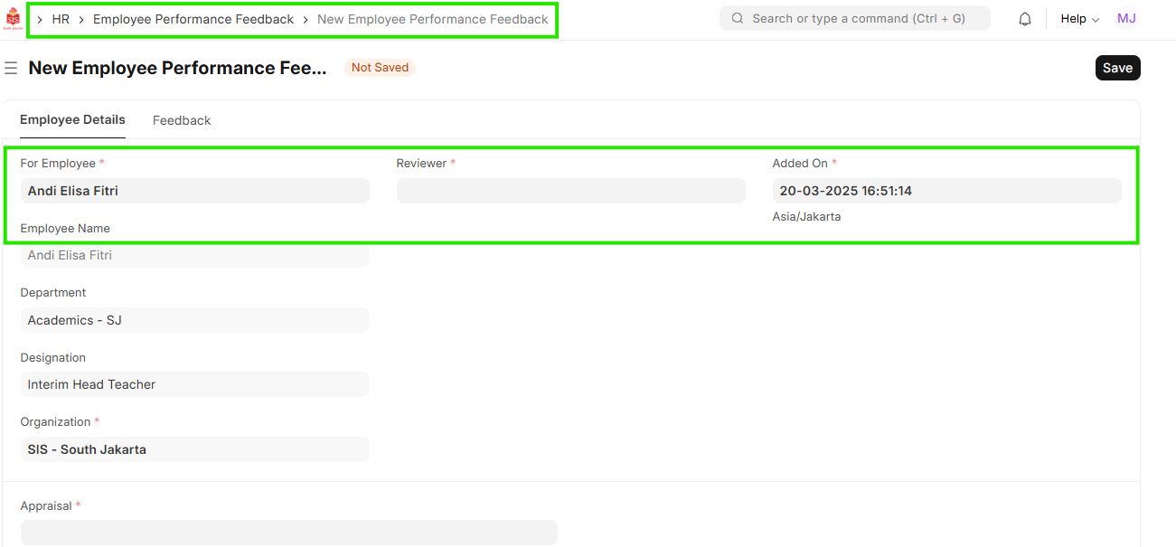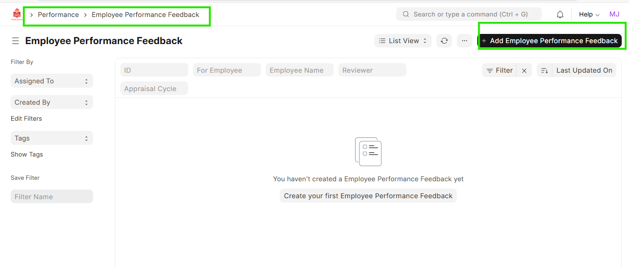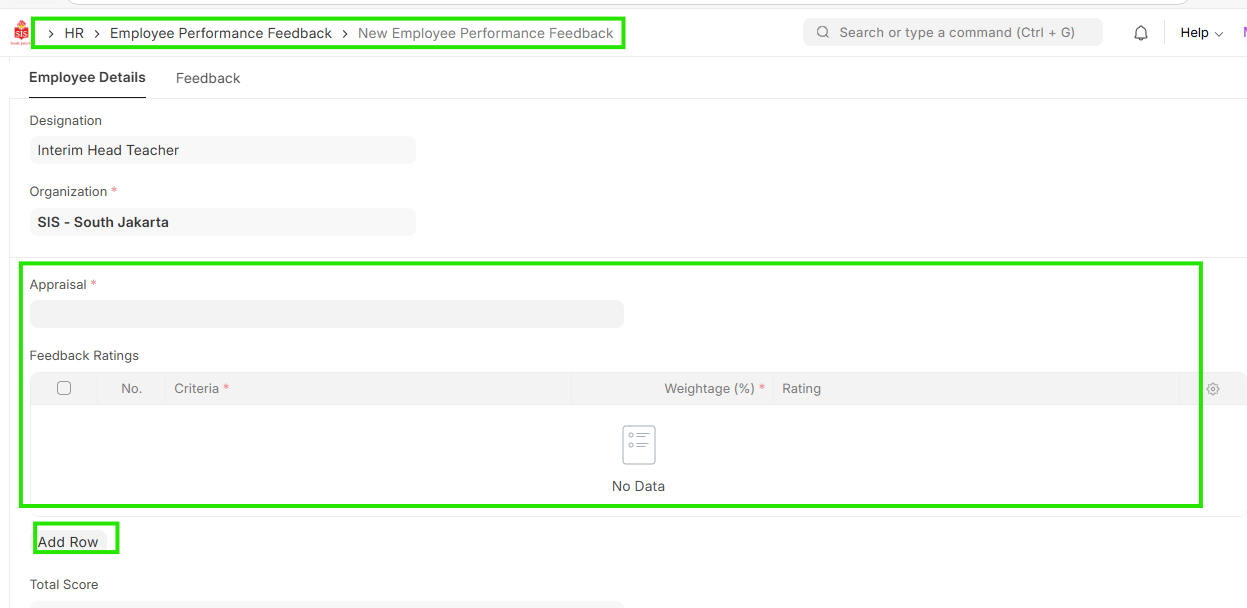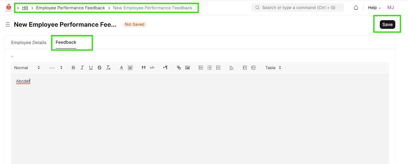 Navigation: Home > Select HR Module > Select Performance > Employee Performance Feedback