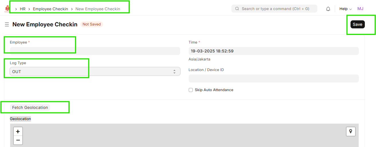 Navigation: Home > Select HR Module > Select Shift & Attendance > Select Employee Checkin