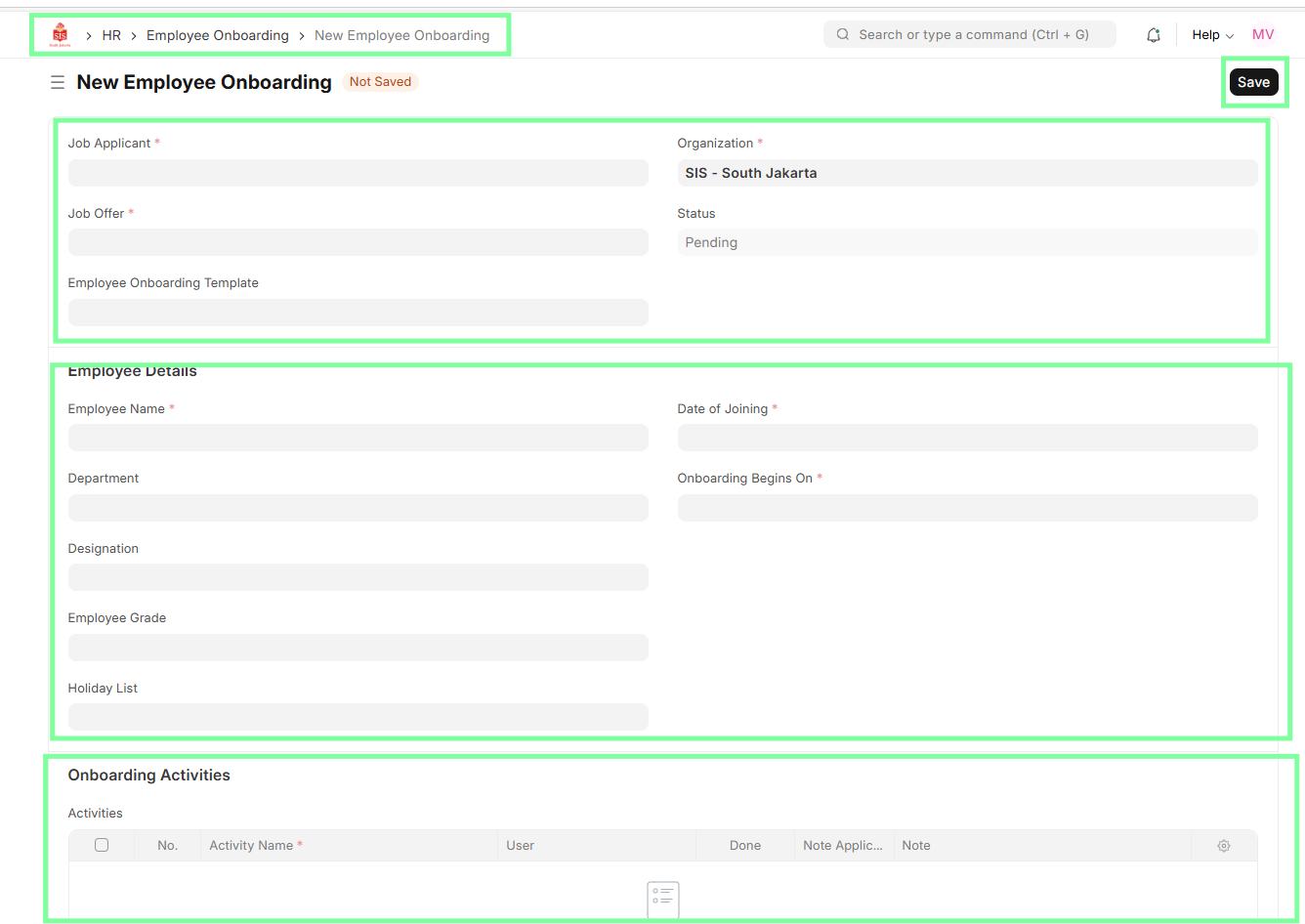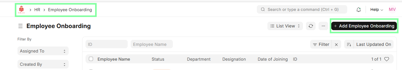 Click Add Employee onboarding, enter details like Name, Employee ID, Department, Designation, Joining Date, Onboarding Activites etc.