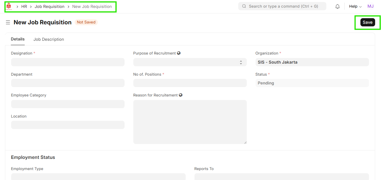 HR-Job Requisition Creation
