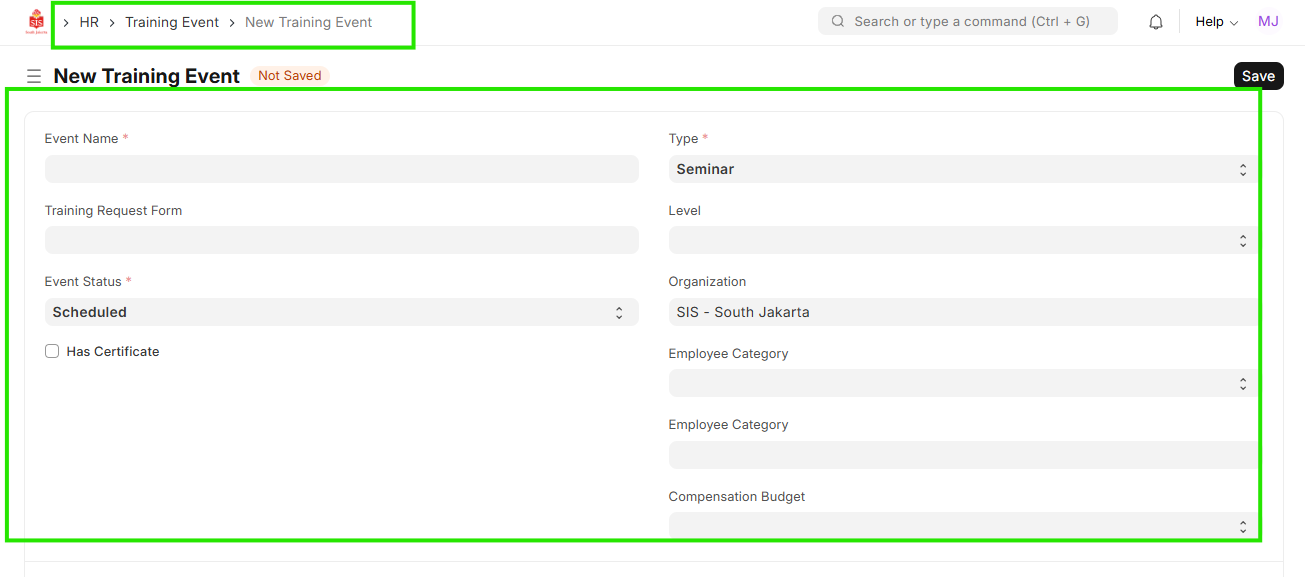 Navigation: Home > Select HR Module > Select Employee Lifecycle > Training Event