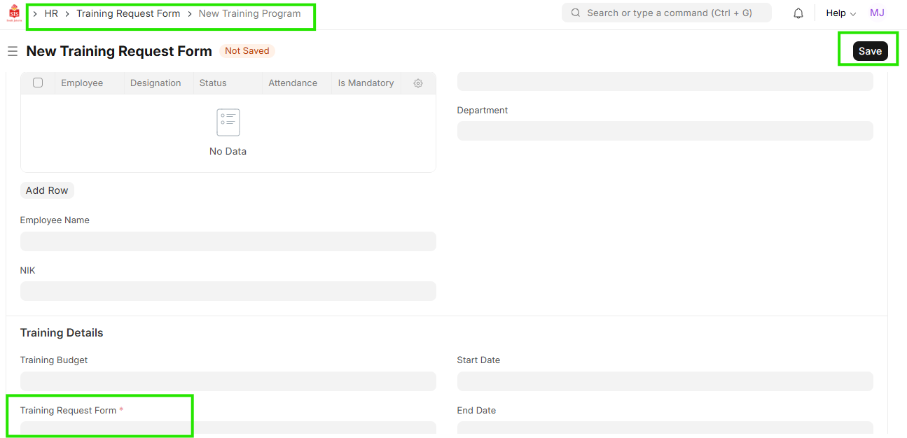 2. Fill the various details in the training request form.