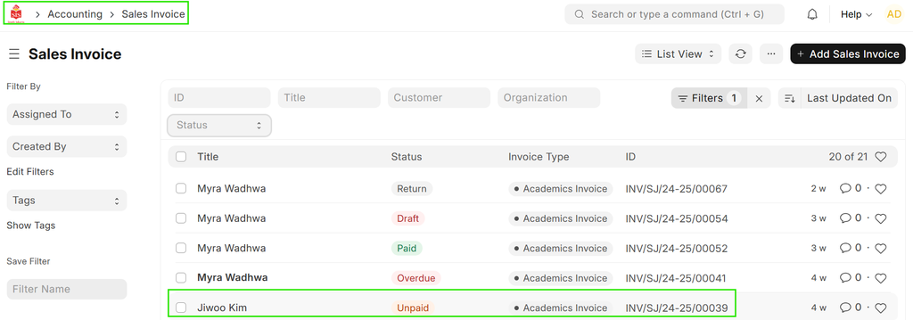 Home > Go to Selling Module > Go to Sales Invoice